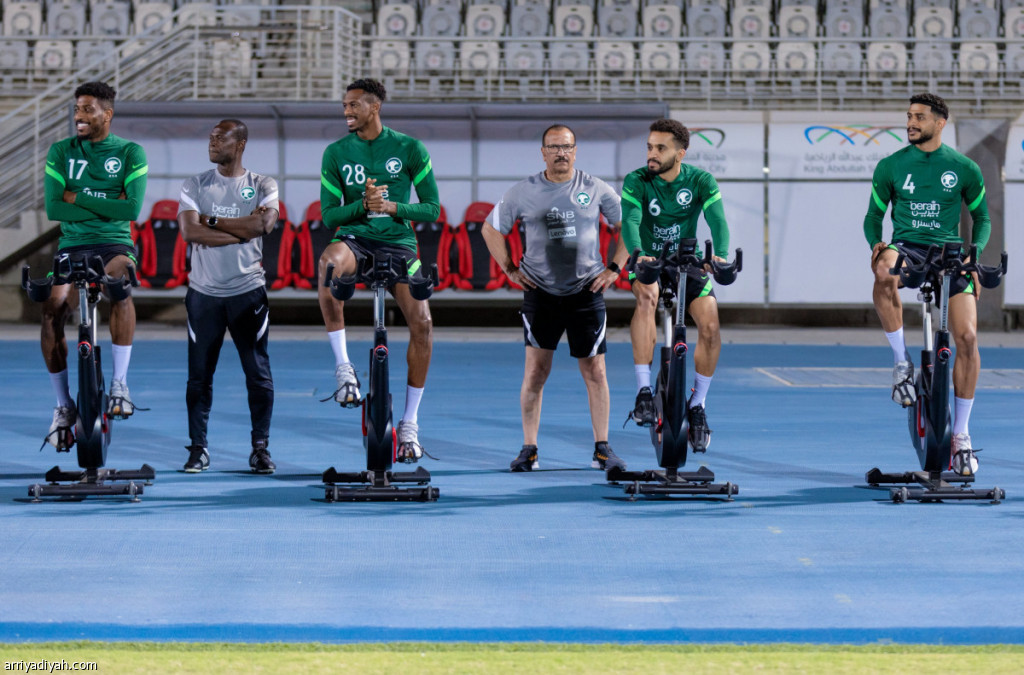 وأجرى لاعبو الأخضر، تدريباتهم على رديف ملعب مدينة الملك عبدالله الرياضية في جدة، بقيادة الفرنسي هيرفي رينارد مدرب المنتخب، الذي قسم اللاعبين إلى مجموعتين، ضمت الأولى اللاعبين الذين شاركوا بصفة أساسية أمام الصين، حيث خصصت لهم تمارين استرجاعية.