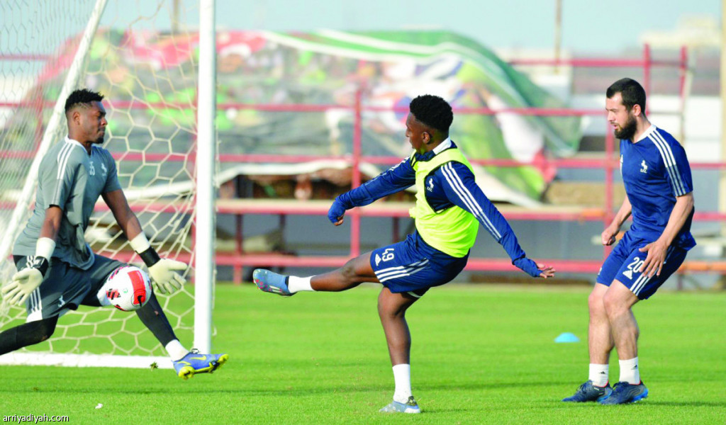 صورة التقطت أمس لعبد الرحمن عبد القادر، لاعب فريق الاتفاق الأول لكرة القدم، يسدد الكرة نحو محمد الحايطي، حارس المرمى، أثناء المناورة الكروية (المركز الإعلامي ـ الاتفاق)