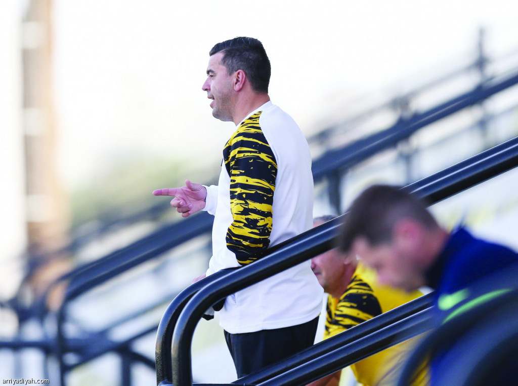 صورة التقطت أمس للروماني كوزمين كونترا، مدرب الاتحاد، خلال متابعته تدريبات أستراليا تصوير: وهبان خبتي