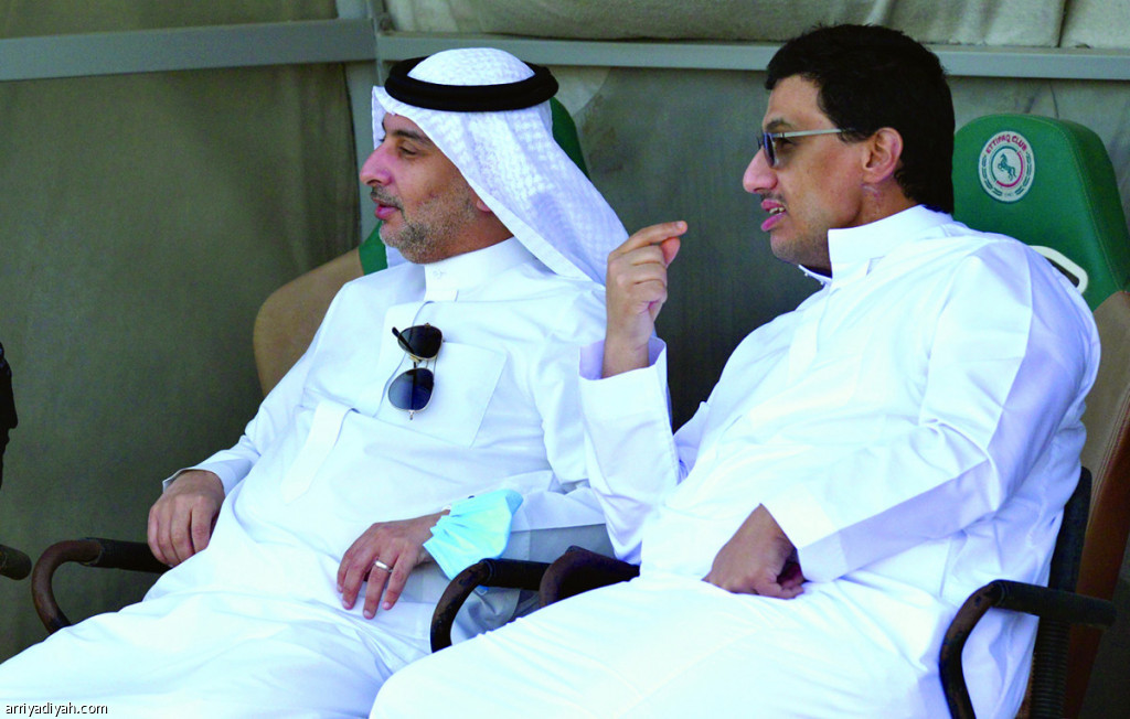 صورة التقطت أمس الأول لحاتم المسحل نائب رئيس نادي الاتفاق يتابع برفقة أحد الحضور الحصة التدريبية للنادي الشرقي (المركز الإعلامي ـ الاتفاق)