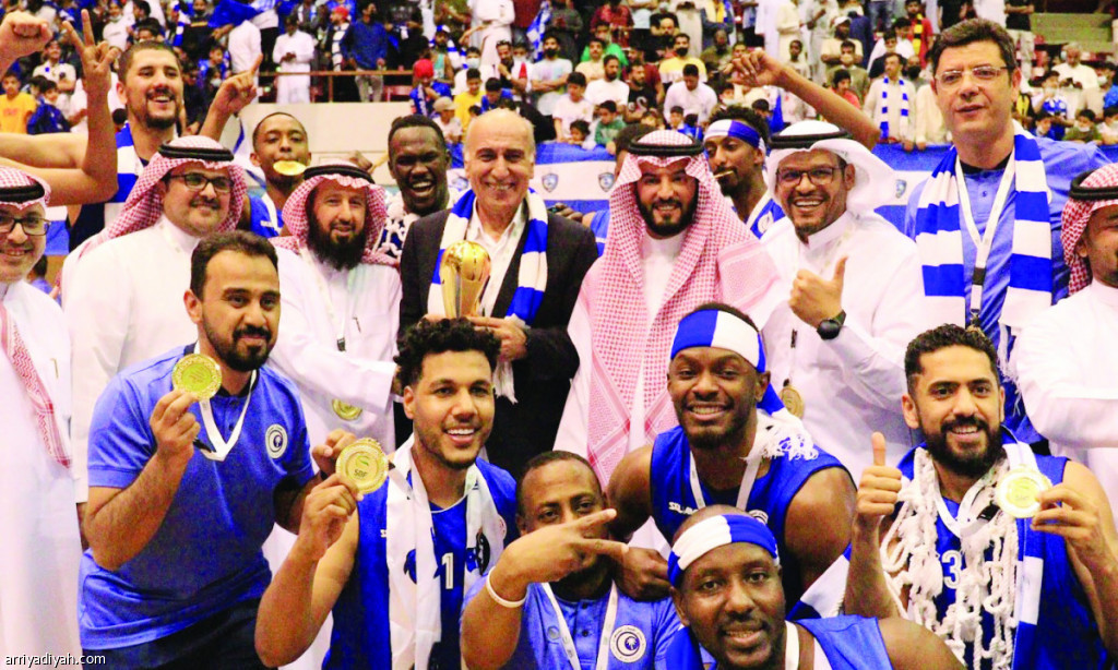 وسلم عبد العزيز المسعد، وكيل وزارة الرياضة لشؤون الشاب والرياضة، والدكتور غسان، طاشكندي، رئيس الاتحاد السعودي لكرة السلة، الهلال الكأس، والميداليات الذهبية.