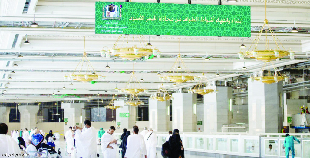 صورة التقطت أمس الأول لشاشة إرشادية داخل المسجد الحرام (رئاسة الحرمين)