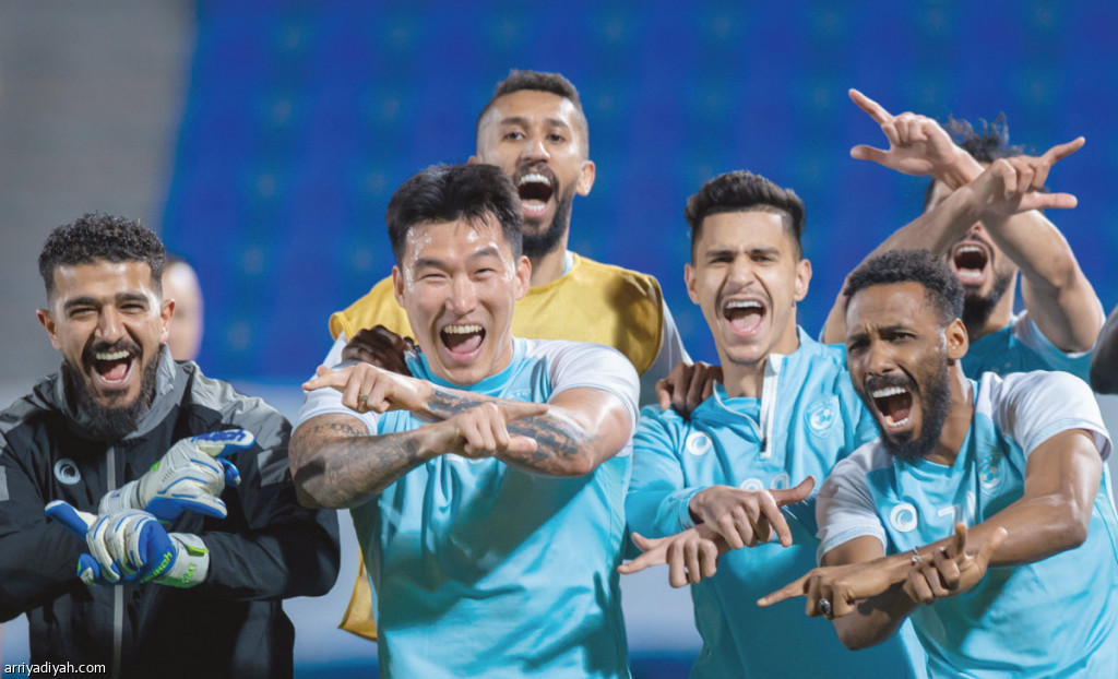 صورة التقطت أمس للاعبي فريق الهلال الأول لكرة القدم يحتفلون عقب فوزهم على الفريق الرديف في المناورة التي فرضها الأرجنتيني رامون دياز مدرب الفريق استعدادًا لمواجهة الشارقة (المركز الإعلامي ـ الهلال)