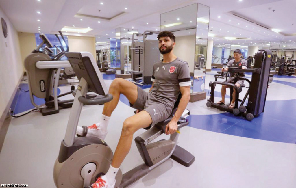صورة التقطت أمس للتونسي فرجاني ساسي لاعب الدحيل أثناء التدريبات الاسترجاعية في فندق موفنبيك بريدة(المركز الإعلامي ـ الدحيل)