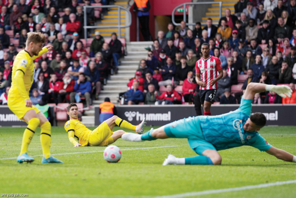 أمطر فريق تشيلسي الأول الإنجليزي لكرة القدم شباك مضيفه ساوثهامبتون بستة أهداف في مباراتهما “6ـ0” لحساب المرحلة الـ 32 من الدوري، معززًا مركزه الثالث. ودخل الـ ”بلوز” المباراة بعد خسارتين على أرضه السبت والأربعاء الماضيين 1ـ4 ضد برينتفورد و1ـ3 أمام ريال في دوري الأبطال.