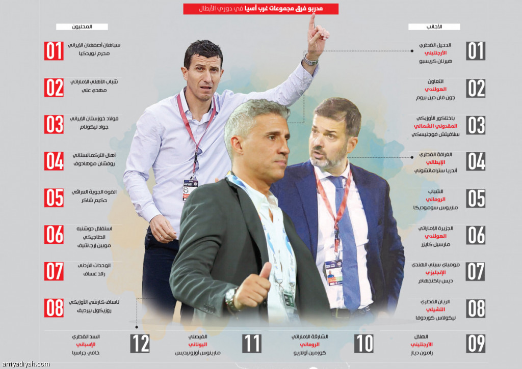 يجلس مدربون أجانب على مقعد القيادة الفنية لـ 12 من الفرق الـ 20 التي تخوض حاليًا على الأراضي السعودية مرحلة المجموعات من دوري أبطال آسيا، ممثلة عن غرب القارة.