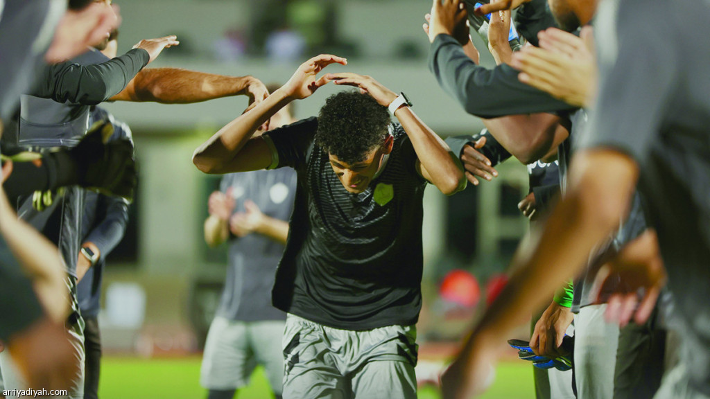 صورة بثها أمس نادي الطائي لمحمد مران، مهاجم الطائي، يتلقى أمس الأول ترحيبًا من زملائه بعودته إلى ملعب التدريبات بعد التعافي من الإصابة (المركز الإعلامي- الطائي)