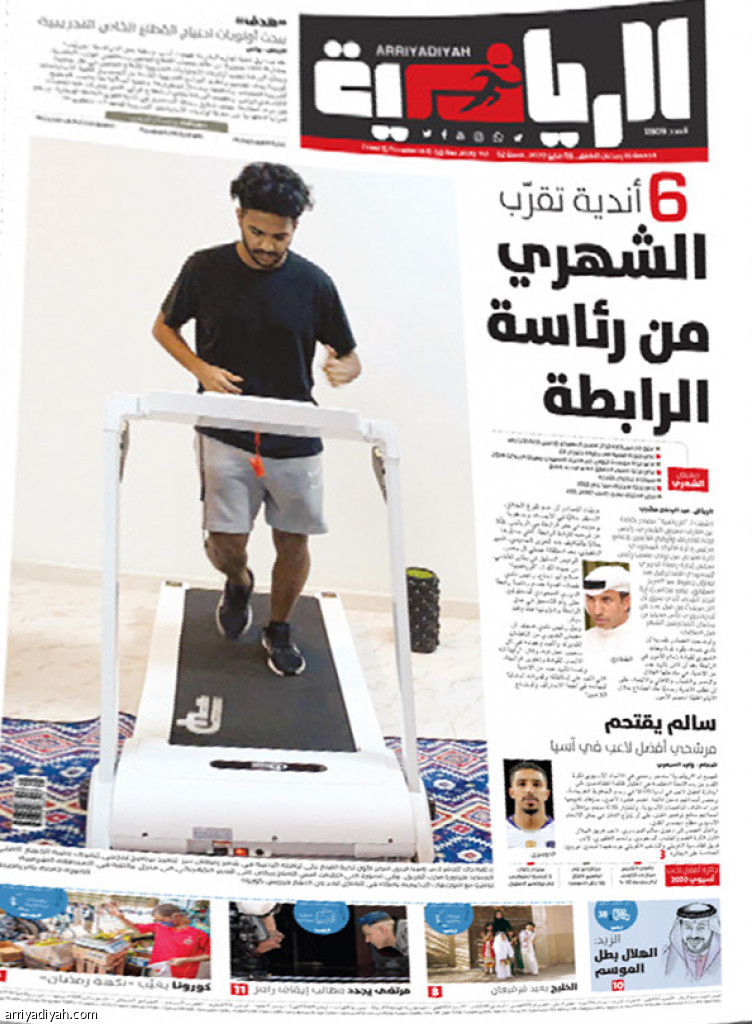 أفاد الخبر الرئيس في الصفحة الأولى لـ “الرياضية” بترشيح 6 أندية، بينها الهلال والنصر، معيض الشهري، رئيس لجنة الاحتراف وأوضاع اللاعبين في الاتحاد السعودي لكرة القدم، لترؤس رابطة دوري المحترفين.. وأشار الخبر إلى قيادة نادي ضمك محاولة إيصال الشهري إلى المنصب.. وأبرزت الصفحة دخول سالم الدوسري، جناح المنتخب السعودي والهلال، قائمة المتنافسين العشرة على جائزة أفضل لاعب في آسيا لعام 2020.