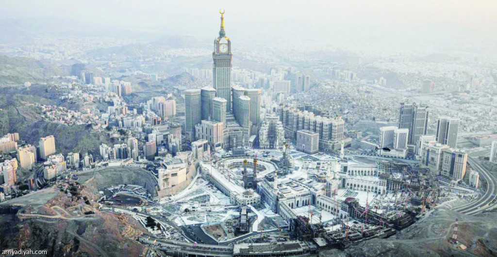 صور التقطت أمس الأول لمناظر جوية، على ارتفاع 1000 متر، للمسجد الحرام والمنطقة المركزية والطرق المؤدية إليهما (رئاسة الحرمين)