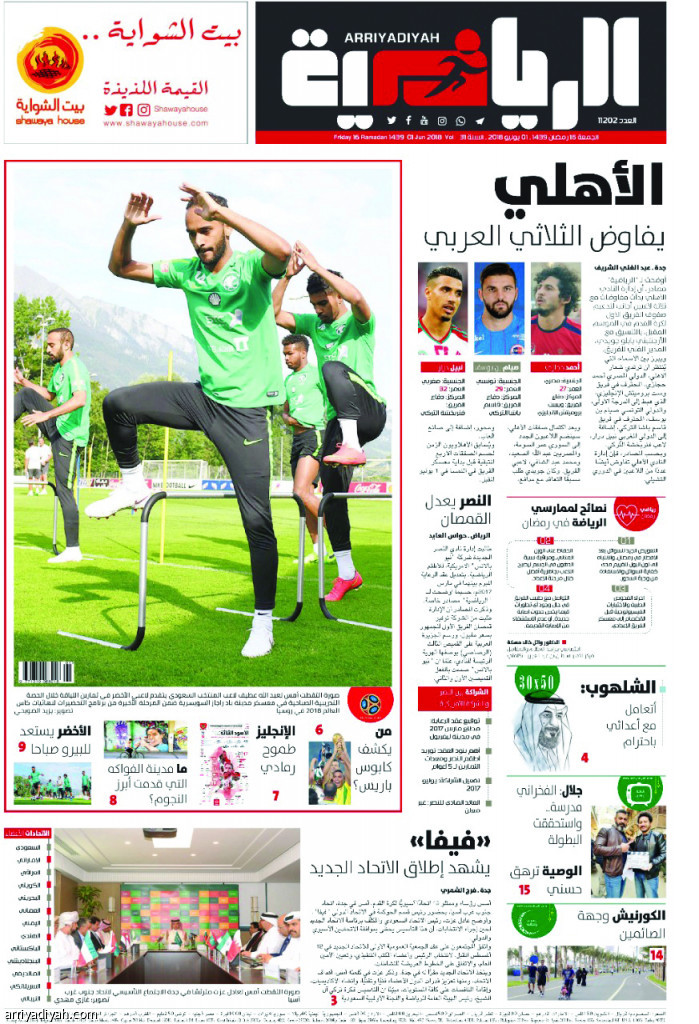 تصدَّر الصفحة الأولى لصحيفة “الرياضية” خبر تفاوض النادي الأهلي مع المصري أحمد حجازي، مدافع وست بروميتش الإنجليزي، والتونسي صيام بن يوسف، لاعب قاسم باشا التركي، والمغربي نبيل درار، لاعب فنربخشة التركي، إلى جانب عدد من اللاعبين في الدوري التشيلي، حيث سارع الأهلاويون لاختيار أربعة لاعبين قبل إغلاق باب التسجيلات.