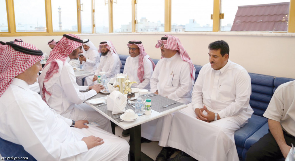 صورة التقطت أمس الأول من حفل الإفطار الرمضاني ويبدو صالح أبو نخاع رئيس ضمك (المركز الإعلامي ـ عازم)