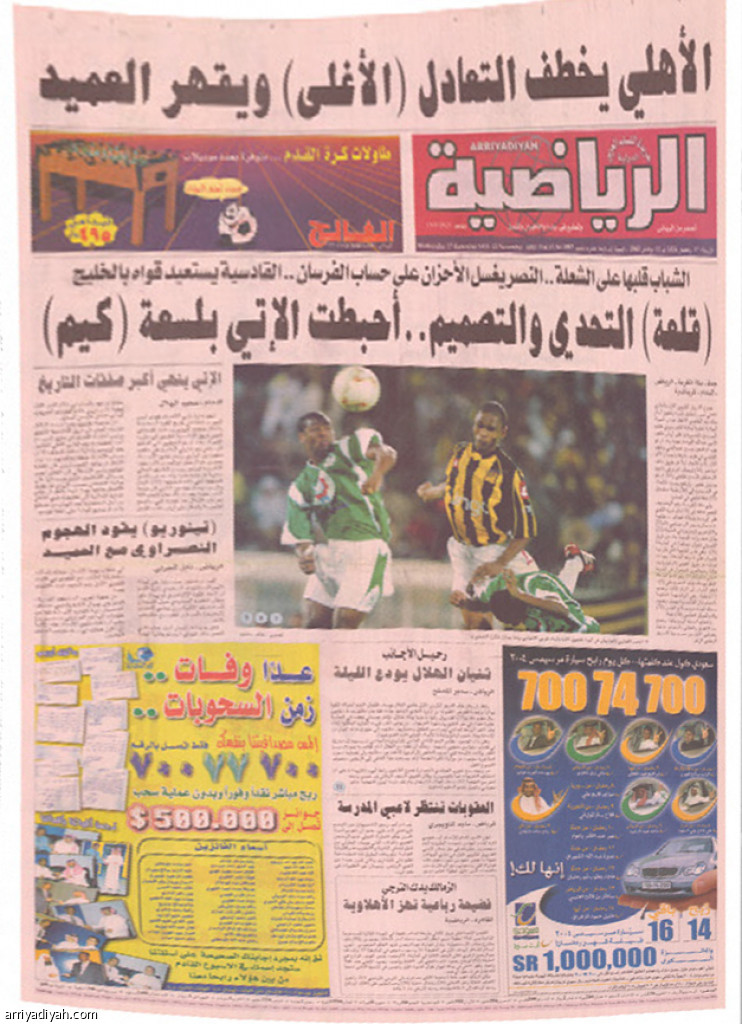 كما تناول الغلاف رحيل يوسف الثنيان وكتب: “الثنيان يودع الهلال” بعد رفضه تمديد عقده لمدة عام مقابل 500 ألف ريال و15 ألفًا راتبًا شهريًّا.