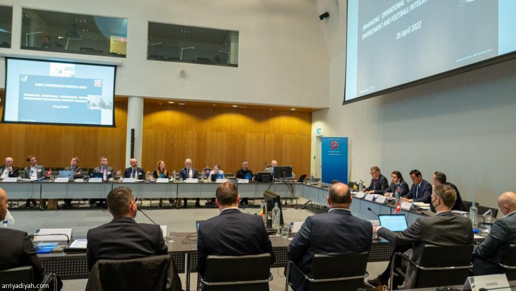 جانب من اجتماع الاتحاد الأوروبي لكرة القدم، ووكالة الشرطة الأوروبية في لاهاي الهولندية