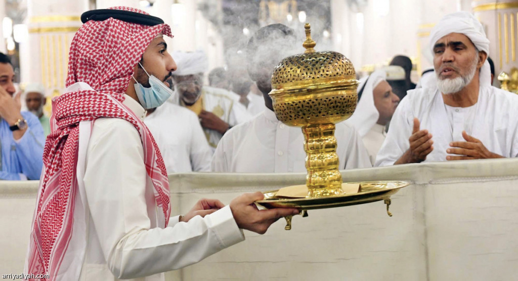 تُواصل إدارة تطييب المسجد النبوي منذ بداية شهر رمضان المبارك، عملية تبخيره على فترات عدة على مدار الشهر الفضيل، واستهلكت 18 كجم من العود الفاخر، إضافة إلى استهلاك 9 لترات من دهن العود والمسك الفاخر والعطور، لتطييب القاصدين والمسجد في قسمي الرجال والنساء.