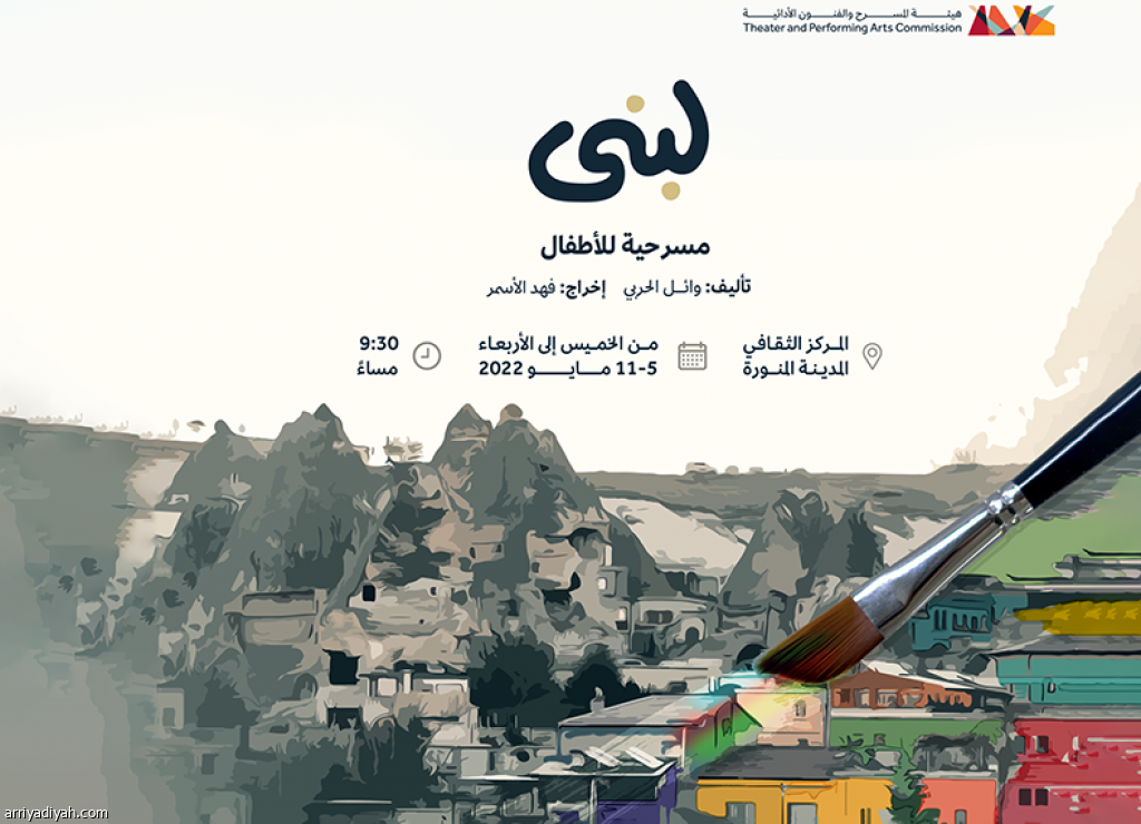 أعلنت هيئة المسرح والفنون الأدائية، أمس، عن عرض مسرحية “لبنى” على مدى سبعة أيام متتالية بدايةً من الخميس 5 مايو إلى الأربعاء 11 مايو 2022م، بالمركز الثقافي في المدينة المنورة، وذلك ضمن جهود الهيئة في إثراء المسرح السعودي.