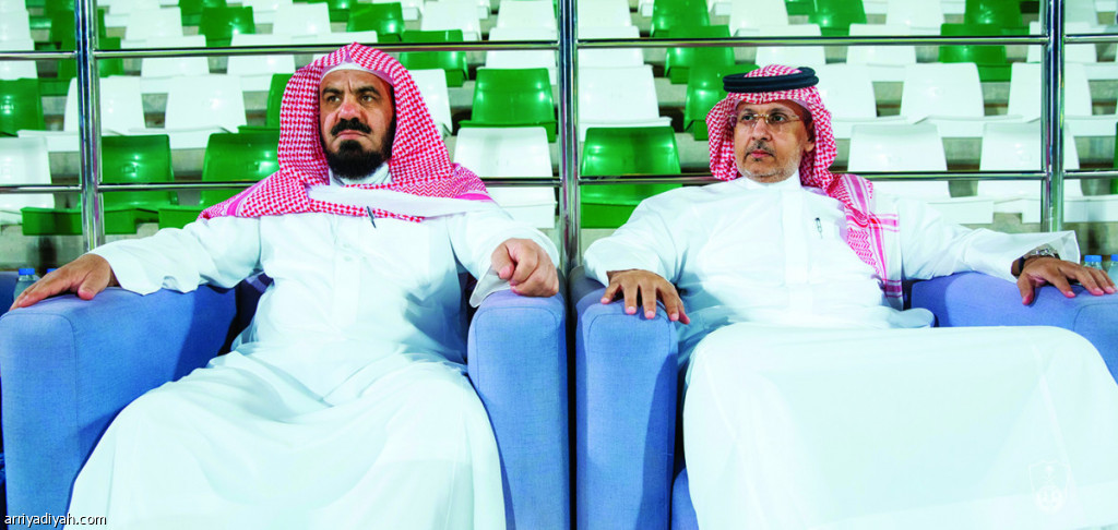 صورة التقطت أمس لمحمد الديني الرئيس التنفيذي للنادي الأهلي وبجانبه تركي الضبعان رئيس نادي الطائي خلال متابعتهما المباراة التجريبية بين الفريقين التي كسبها الطائي 2ـ1 (المركز الإعلامي - الأهلي)
