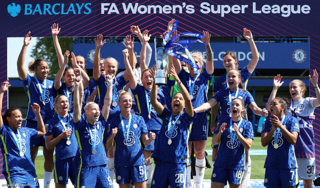 توج تشيلسي بطلًا للدوري الإنجليزي الممتاز لكرة القدم النسائية للمرة الثالثة على التوالي والخامسة خلال سبعة أعوام بعد أن قلب تأخره وفاز 4ـ2 على مانشستر يونايتد، أمس، بفضل تألق لاعبته سام كير.