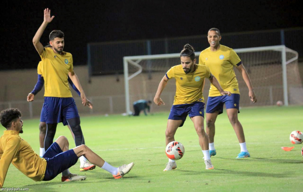 صورة التقطت أمس للبرازيلي ريلان مهاجم فريق العروبة الأول لكرة القدم يمرر الكرة أثناء التدريبات الجماعية استعدادًا لمواجهة الأخدود بعد غدٍ، على ملعب النادي في سكاكا، ضمن الجولة الـ 36 من دوري “يلو” لأندية الدرجة الأولى (المركز الإعلامي - العروبة)