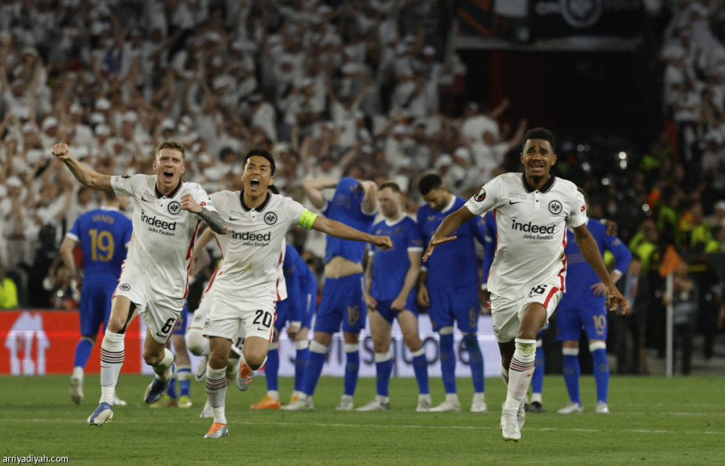 توّج فريق أينتراخت فرانكفورت الألماني الأول لكرة القدم، بلقب الدوري الأوروبي، إثر فوزه 5-4 بركلات الترجيح على رينجرز الأسكتلندي، بعد انتهاء الوقتين الأصلي والإضافي بالتعادل 1-1، على ملعب رامون سانشيز بيزخوان، في إشبيلية الإسبانية، الأربعاء.