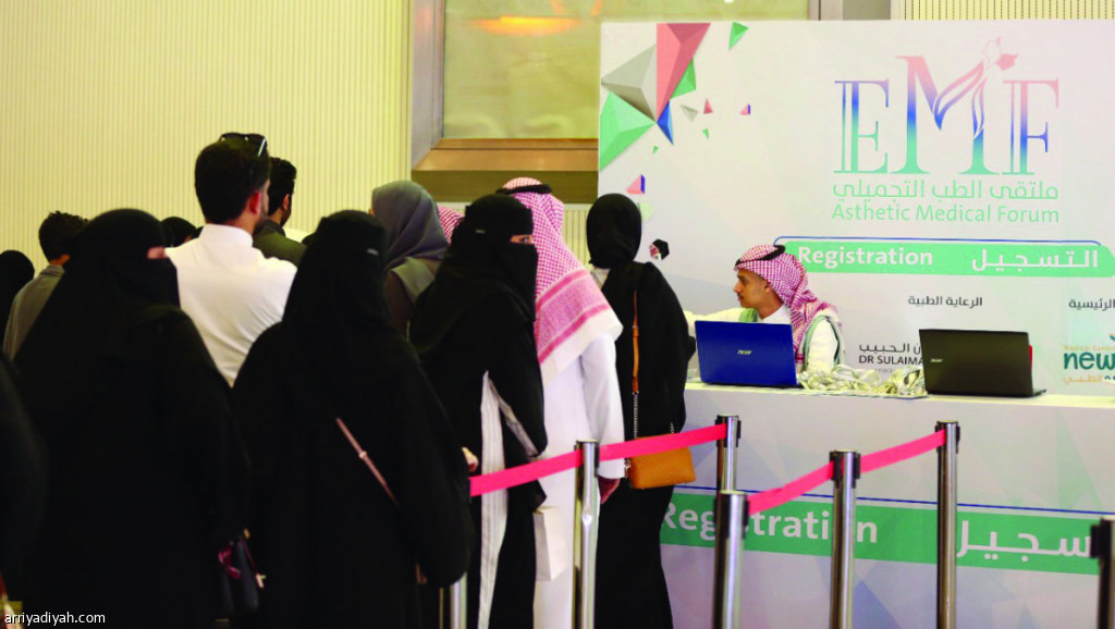 صورة التقطت أمس أثناء تسجيل المشاركين بملتقى الطب التجميلي في الرياض(المركز الإعلامي - ملتقى الطب التجميلي)