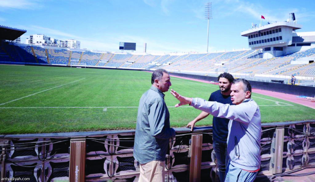 صورة التقطت أمس لمحمود الخطيب، رئيس النادي الأهلي المصري، مع حسام غالي وخالد مرتجى عضوي الإدارة خلال تفقدهم ملعب محمد الخامس في الدار البيضاء(المركز الإعلامي - الأهلي)