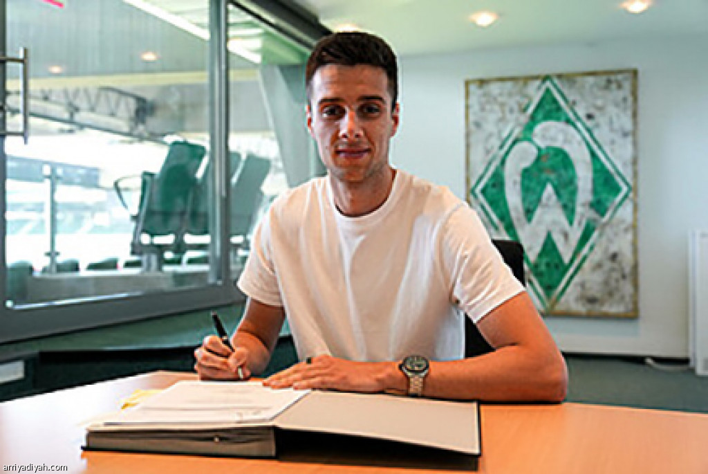 صورة التقطت أمس للبلغاري إيليا جروف، لاعب بريمن، أثناء توقيع عقده الجديد (فيردر بريمن)