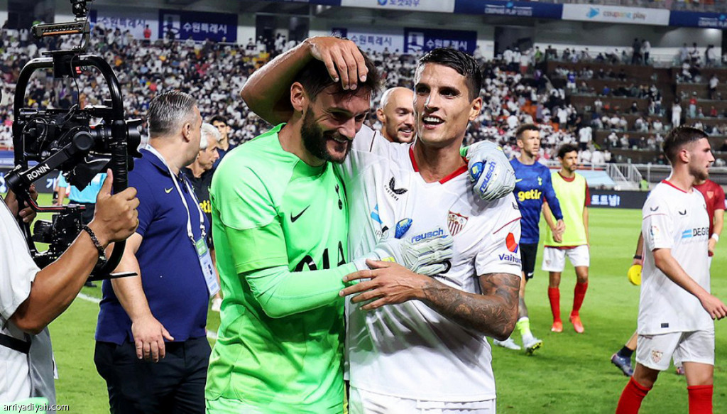 صورة التقطت أمس للفرنسي هوجو لوريس، حارس مرمى توتنهام هوتسبير، يصافح الأرجنتيني إيريك لاميلا، جناح إشبيلية حاليًّا وتوتنهام سابقًا، خلال مباراة الفريقين التجريبية في سول، العاصمة الكورية (المركز الإعلامي ـ توتنهام هوتسبير)