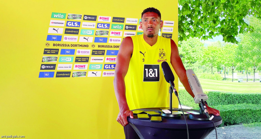 صورة التقطت أمس للإيفواري سيباستيان هالر، مهاجم بوروسيا دورتموند الجديد، يتحدث للإعلام داخل معسكر الفريق في سويسرا (المركز الإعلامي- بوروسيا دورتموند)