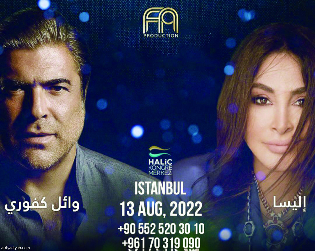 يحيي المطربان اللبنانيان وائل كفوري وإليسا حفلًا غنائيًّا، 13 أغسطس المقبل، في مدينة إسطنبول التركية.