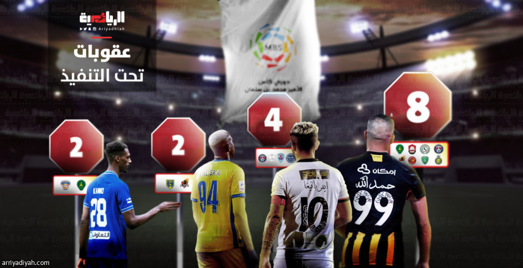 تنطلق شارة بداية دوري كأس محمد بن سلمان للمحترفين 22-23، في الـ25 من أغسطس الجاري، وسط غياب 4 لاعبين من 4 أندية مختلفة، مع اختلاف العقوبات والجهات الحاكمة بها، وتفاوت مدد تنفيذها.