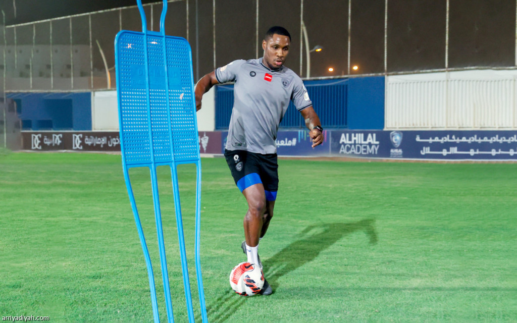 صورة التقطت أمس للمهاجم النيجيري أوديون إيجالو خلال التدريبات الفردية التي يخوضها على ملعب نادي الهلال (المركز الإعلامي ـ الهلال)