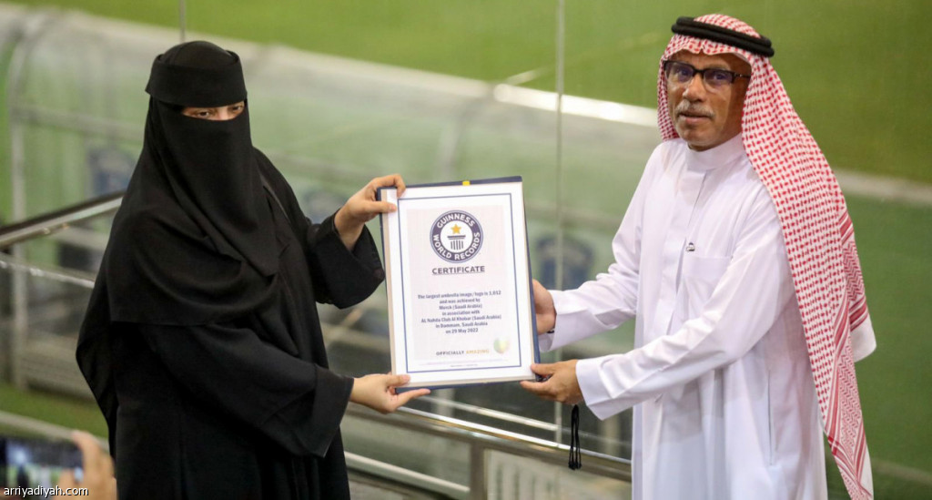 منحت موسوعة “جينيس” للأرقام القياسية، أمس، نادي النهضة شهادة أكبر مظلة تحمل شعار مرض “التصلب المتعدد” مع جمعية أرفى، التي نظمت على ملعب النادي بالدمام في 29 مايو الماضي، ضمن فعاليات برنامج “كن لأجلك”، حسبما أعلن النادي.
