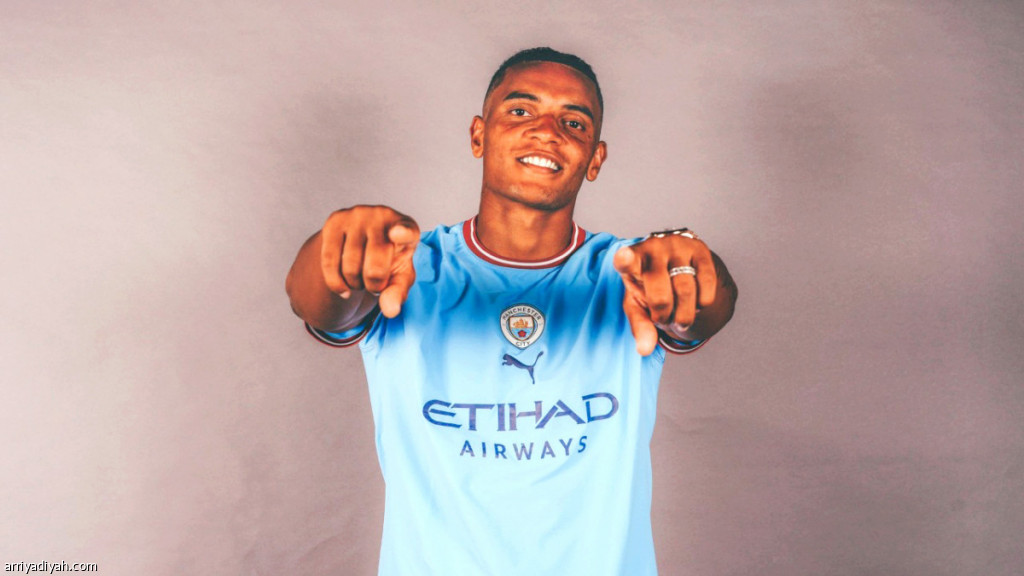صورة التقطت أمس لمانويل أكانجي أثناء إعلان صفقة انتقاله لفريق مانشستر سيتي، مرتديًّا قميص السيتي (الموقع الإلكتروني ـ مانشستر سيتي)