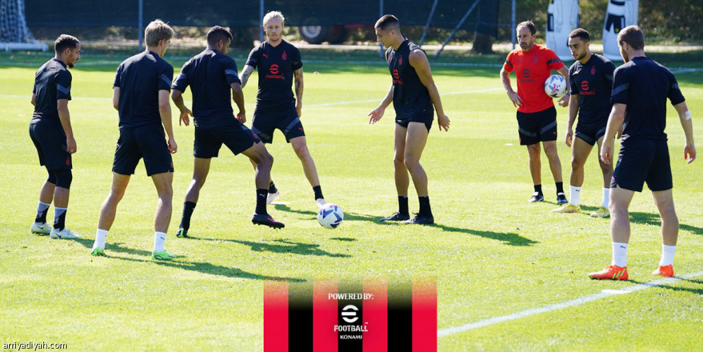 صورة التقطت أمس للاعبي فريق ميلان الإيطالي خلال الحصة التدريبية قبل مواجهة نابولي (المركز الإعلامي - ميلان)