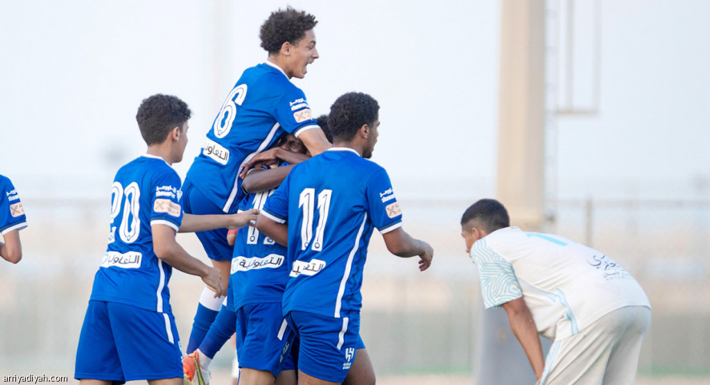 صورة التقطت أمس للاعبي فريق الهلال تحت 17 عامًا يحتفلون بهدف عبد العزيز الهدهود في مرمى الجيل، وتبدو الحسرة على أحد لاعبي الجيل (المركز الإعلامي ـ الهلال)