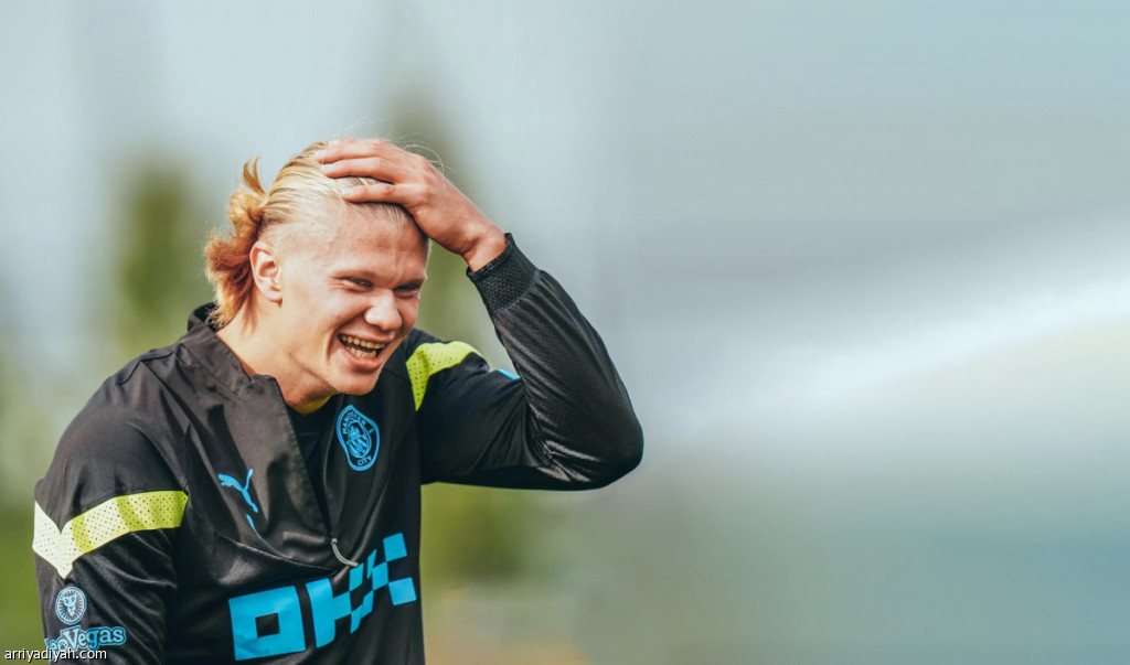 صورة التقطت أمس للنرويجي إيرلينج هالاند، مهاجم فريق مانشستر سيتي الأول لكرة القدم، يستعد للمشاركة في الحصة التدريبية لفريقه، تحضيرًا لمواجهة الديربي أمام مانشستر يوناتيد اليوم على ملعب الاتحاد ضمن الجولة التاسعة من الدوري الإنجليزي الممتاز (المركز الإعلامي ـ مانشستر سيتي)