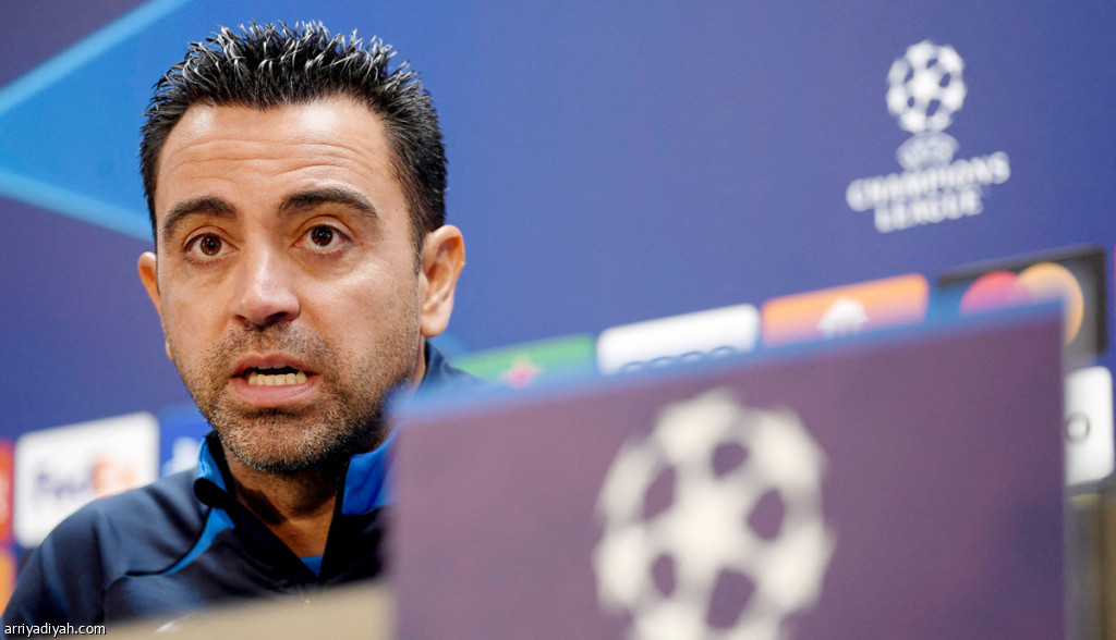 صورة التقطت أمس للإسباني تشافي هيرنانديز، مدرب فريق برشلونة الإسباني الأول لكرة القدم، أثناء حديثه في المؤتمر الصحافي عن لقاء اليوم أمام إنتر ميلان الإيطالي (الفرنسية)