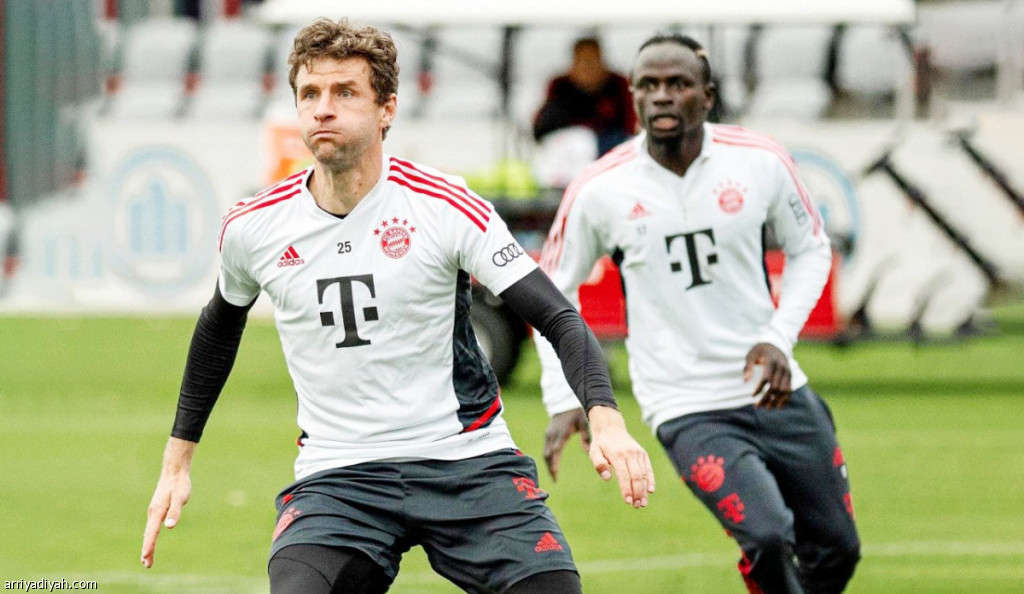 صورة التقطت أمس لتوماس مولر وساديو ماني، لاعبي فريق بايرن ميونيخ، خلال الحصة التدريبية الأخيرة قبل مواجهة فرايبورج اليوم (حساب تويتر ـ بايرن ميونيخ)