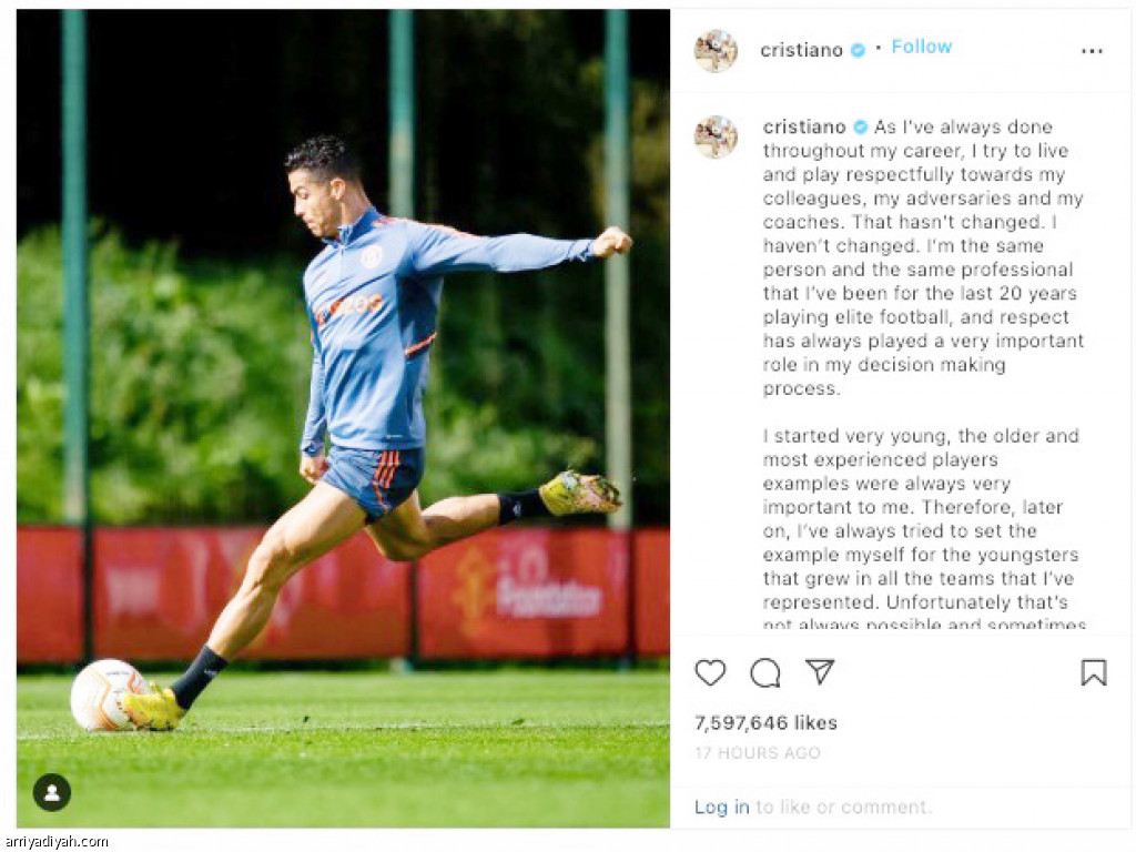 رونالدو حاول تلطيف الجو مع مدربه ببيان اعتذار على حسابه الرسمي على إنستجرام، نال 7.6 مليون إعجاب في أول 17 ساعة من نشره، إلا أنه لم يكن كافيًا للمدرب لأن يغير من قراره.