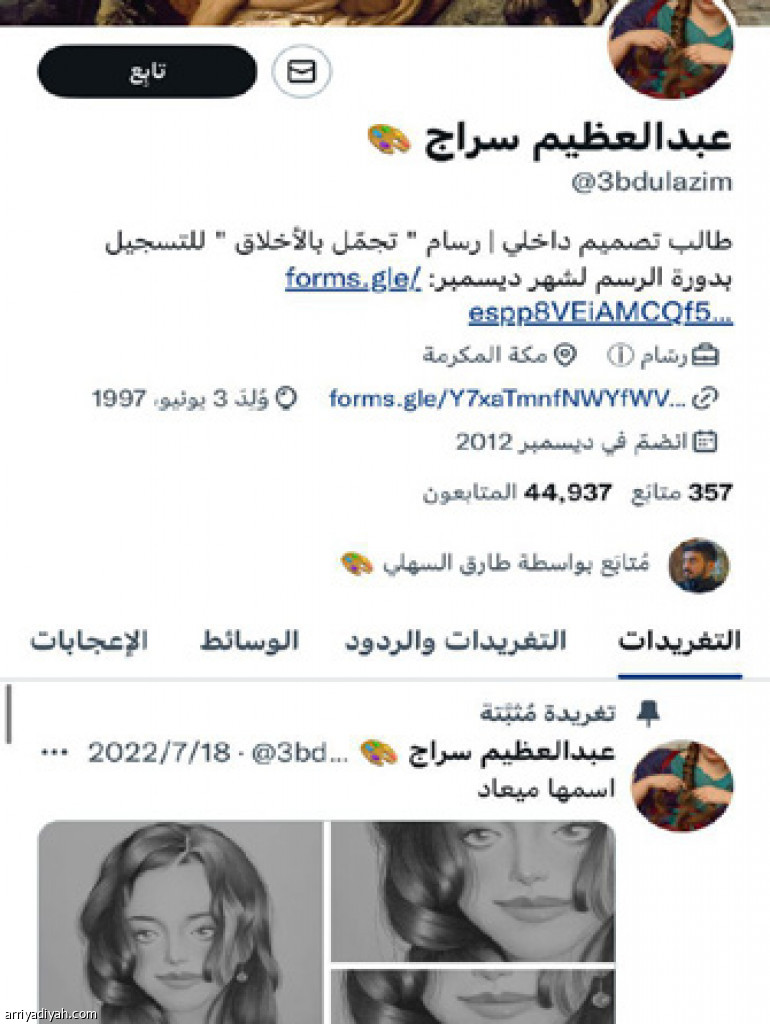 احتضن “تويتر” موهبة الرسام عبد العظيم سراج، الذي يتابعه نحو 44 ألف متابع.