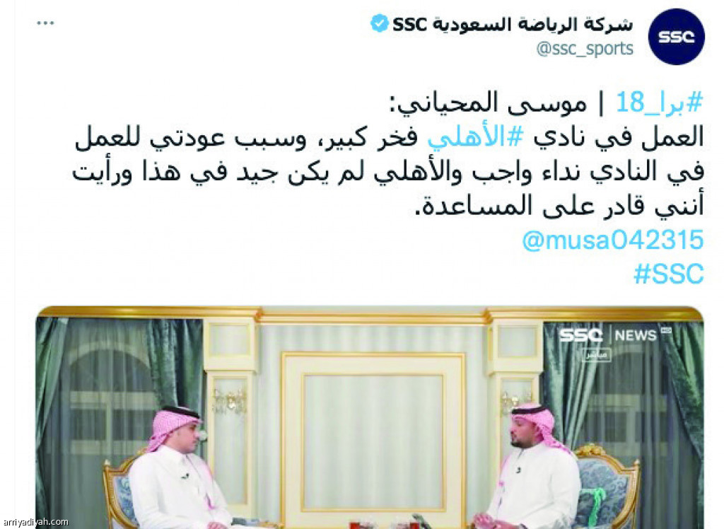 حديث المحياني على SSC يثير الجدل بين الأهلاويين