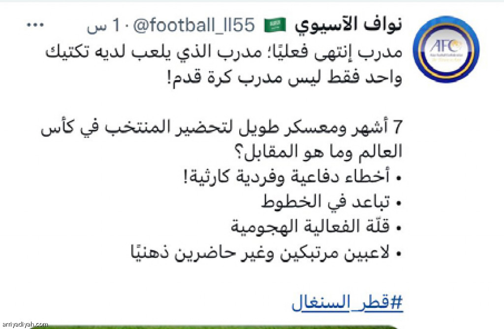 وجاءت غالبية التغريدات منتقدة الإسباني فليكس سانشيز، مدرب قطر، من بينهم نواف الآسيوي الذي كتب: “مدرب انتهى فعليًّا، مدرب لديه تكتيك واحد فقط، ليس مدرب كرة قدم”.