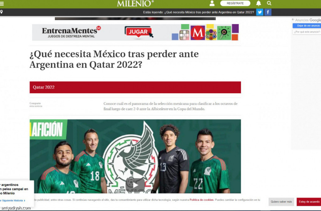 سلط عدد من الصحف والمواقع الإلكترونية الرياضية المكسيكية الضوء على نتائج منتخب بلادها وحظوظه للتأهل إلى دور الـ 16 في نهائيات كأس العالم 2022 عقب خسارته من الأرجنتين في الجولة الماضية، وقبيل لقاء الأخضر في مباراة الفرصة الأخيرة للتأهل، إذ نشرت صحيفة milenio تقريرًا بعنوان: “ماذا يحتاج المكسيك للصعود إلى دور الـ 16، وأن لقاء السعودية هي الفرصة الأخيرة لها للتأهل إلى الدور التالي؟”. فيما انتقدت صحيفة eleconomista المكسيكية أداء المدرب جيراردو مارتينو في مباراة الأرجنتين، واصفة إياه بغير الفاعل، وأن المكسيك سيدخل لقاء السعودية وهو يحمل بيده آلة حاسبة في إشارة لاحتمالات التأهل إلى دور الـ 16. أما صحيفة elfinanciero فسلطت الضوء على رسالة مانويل أوبرادور الرئيس المكسيكي للاعبين بعد الخسارة من الأرجنتين، وتحفيزهم قبل لقاء السعودية، وقالت: “تُربح كرة القدم بالأهداف”. ووصفت المشاركة بالأسوأ لها في تاريخ كأس العالم، وكتبت الصحيفة “كيف يمكنكم التغلب على منتخب لا يعرف الاستسلام”. ونشرت صحيفة elimparcial تقريرًا عن مواجهات الأخضر مع المكسيك، ووصفت أن لاعبي السعودية يبحثون عن تحقيق الحلم بالوصول إلى دور الـ 16.