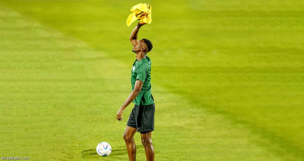 صورة التقطت أمس لمحمد كنو، لاعب المنتخب السعودي الأول لكرة القدم، خلال التدريب الأخير استعدادًا لمواجهة المكسيك في الـ 10:00 من مساء اليوم على ملعب لوسيل ضمن الجولة الثالثة والأخيرة من دور المجموعات لكأس العالم قطر 2022 تصوير: صالح الغنام