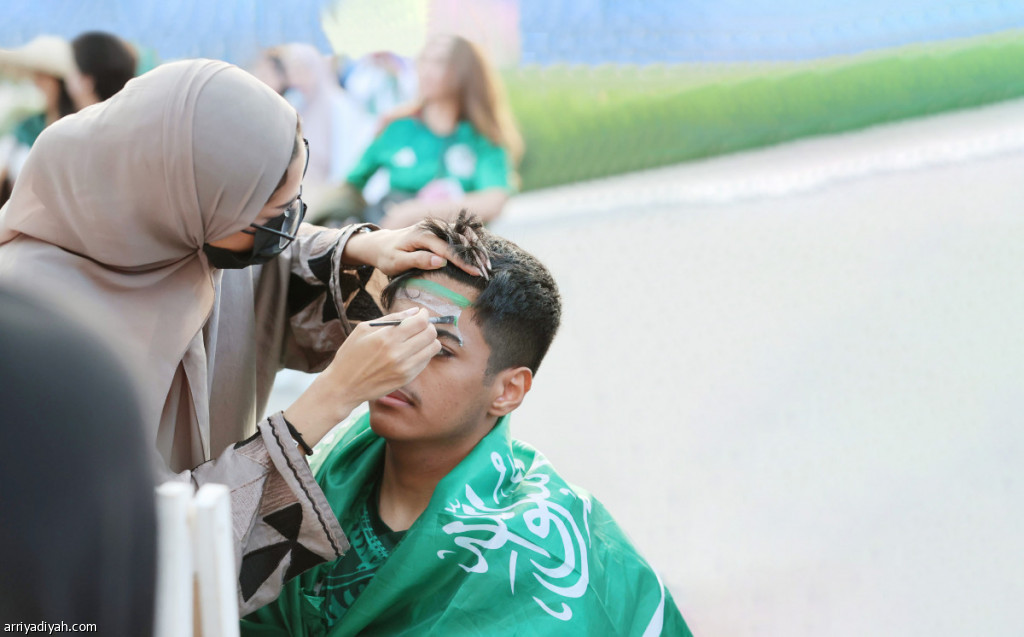 واستمرت المسيرة التي انطلقت في الـ 04:30 عصرًا إلى ملعب لوسيل مدة 30 دقيقة من مواقف الحافلات وحتى الدخول إلى ملعب لوسيل يقودها مجسم حصان ، إضافة إلى مجسم قميص الأخضر، مع ترديد الأهازيج والأغاني السعودية.