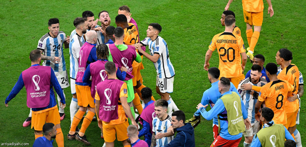 بدأ الاتحاد الدولي لكرة القدم “فيفا”، أمس، إجراءات تأديبية ضد منتخبَي الأرجنتين وهولندا بعد سلسلة من الحوادث التي شابت مواجهتهما المشحونة في ربع نهائي كأس العالم قطر 2022 أمس الأول. وأشهر الحكم 18 بطاقة صفراء، وهو رقم قياسي في مباراة في نهائيات كأس العالم، خلال المواجهة التي انتهت بفوز الأرجنتين بركلات الترجيح 4ـ3 بعد التعادل 2ـ2. وقال “فيفا” في بيان: “التُّهم الموجَّهة إلى الاتحاد الأرجنتيني تتعلق بسوء سلوك لاعب، لم يحدد هويته، ومسؤول في الجهاز الفني”، كما يواجه الهولنديون أيضًا تحقيقًا في سلوك المنتخب.