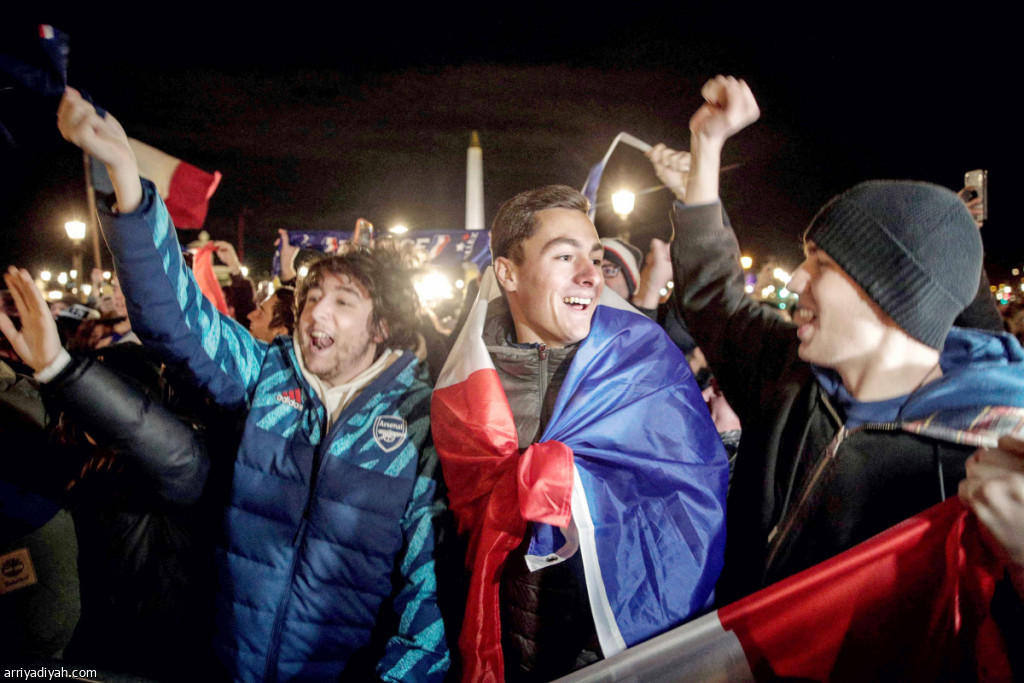 صورة التقطت أمس لمشجعين فرنسيين يحتشدون في ميدان الكونكورد وسط باريس العاصمة لاستقبال المنتخب، وصيف المونديال، وتحية لاعبيه (الفرنسية)