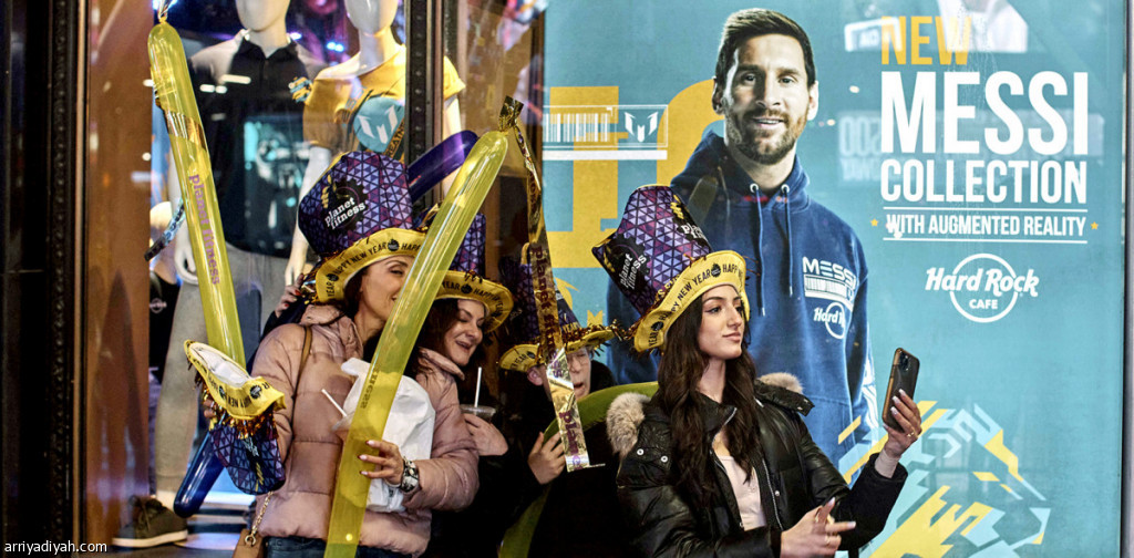صورة التقطت أمس لمشجعات يلتقطن صورًا تذكارية مع ملصق للأرجنتيني ليونيل ميسي، لاعب فريق باريس سان جيرمان الفرنسي الأول لكرة القدم (أسوشيتد برس)