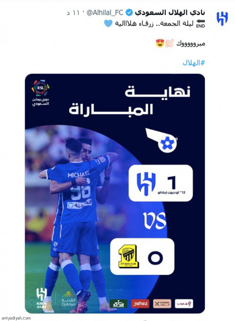 فرحة هلالية كبيرة بالفوز، على الرغم من غضب البعض على تراجع الفريق خلال الشوط الثاني، حيث كتب عايد العليوي: “أنت وحدك كبير، لا يوجد كبير بوجود الهلال”، ومثله كتب عمار العتيبي: “فريق كبير وعودنا أنه يعود في هذه الأوقات، الدوري الرابع على التوالي مسألة وقت، فريق ثقيل يعرف يأخذ المباراة، مبروكين”، وعلى الخط ذاته كتب حمد عبد الله: “الفوز مهم للعودة للطريق الصحيح، بس لازم نشوف سبب توقف الفريق عند الدقيقة 70 اليوم لولا الدفاع كان حاضر والمعيوف كان خسرنا إصابات بالجملة حمد وإيجالو والمالكي”.