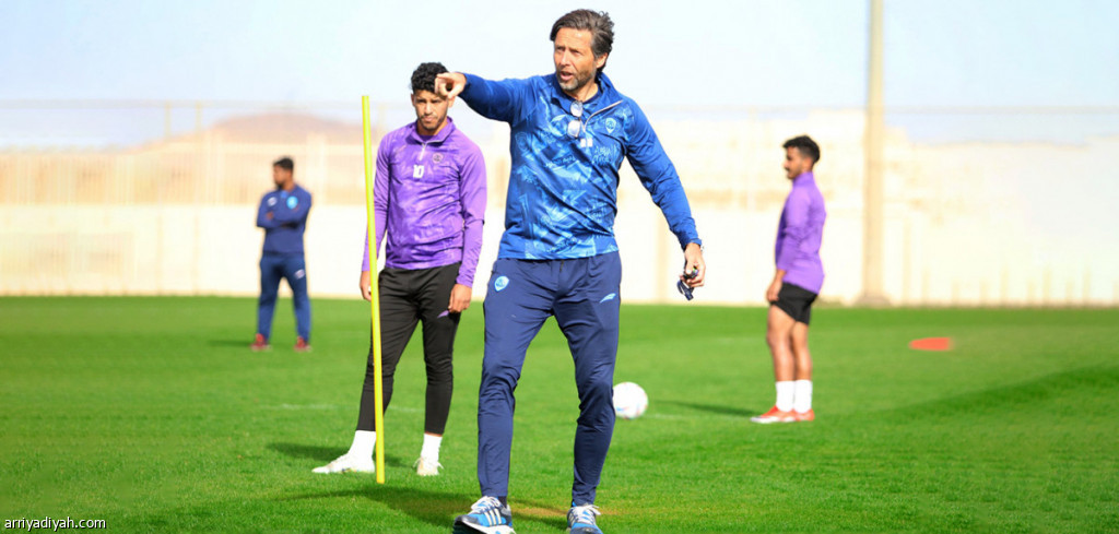 صورة التقطت أمس للهولندي رويل كومانس، مدرب فريق أبها الأول لكرة القدم، يوجِّه لاعبيه خلال الحصة التدريبية(المركز الإعلامي - أبها)